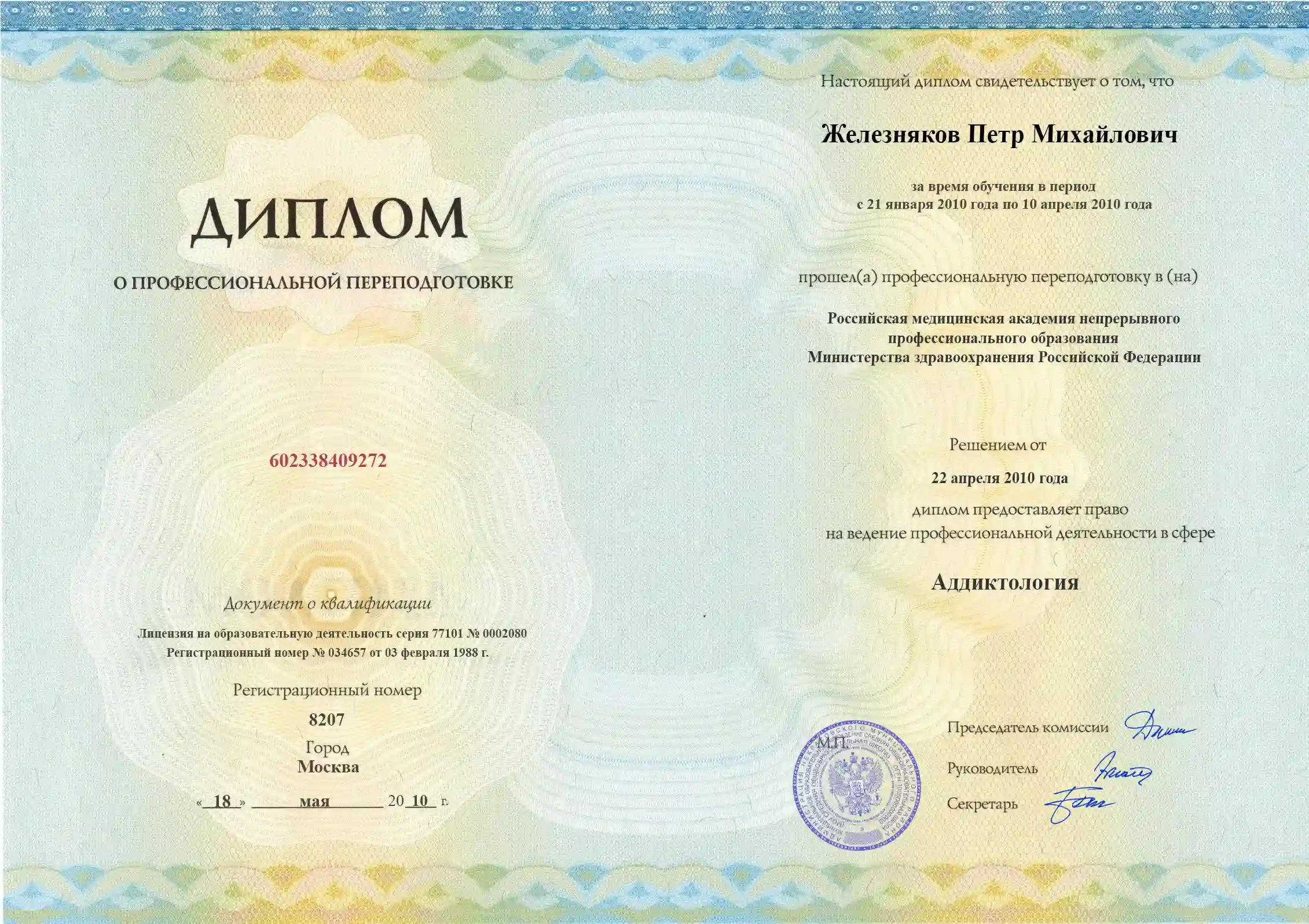 • Должность: Врач аддиктолог первой категории